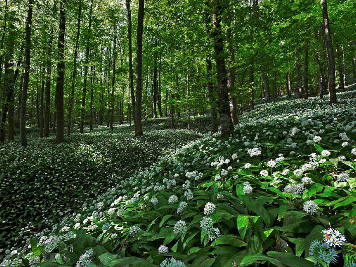 "Bardzo różny wyglądem i środowiskiem występowania od wyżej wspomnianych jest czosnek niedżwiedzi Allium ursinum. Gatunek ten rośnie w wilgotnych lasach liściastych głównie w górach i na pogórzu, choć pojedyncze stanowiska są rozsiane po całej Polsce (występuje np. w Puszczy Białowieskiej).