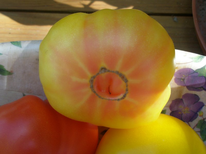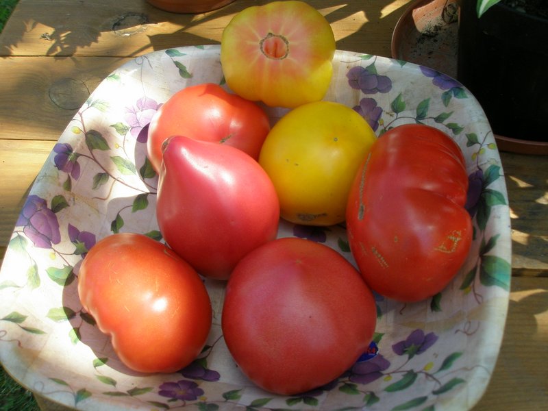 Na misce u góry odmiana Hillbilly,w środku Bawole Serce,po prawej Oregon Spring,na dole Faworyt. Rozkrojony- Big Rainbow- ten to dopiero jest mniammm :D