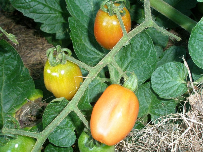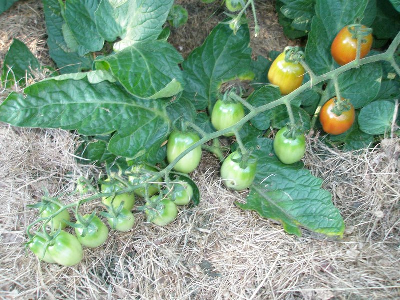 Moje pierwsze tegoroczne pomidory koktajlowe,są też żółte Ola Polka mające dużo zawiązanych owoców,ale dzisiaj zrobione zdjęcie,jeszcze nie zgrane: