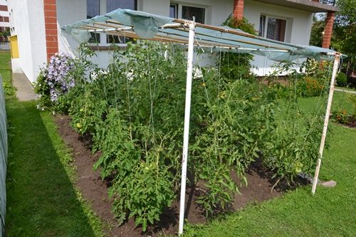 Dziewczyny, daszek u mojego sąsiada jest bardzo podobny, tylko nie sięga do ziemi z żadnej strony a rozpościera się nad krzakami pomidorów ( też posadzonych w rzędzie), nie zwiesza się ta folia nisko, jak na zdjęciach w necie. Sorki, ale nie umiem lepiej tego opisać.