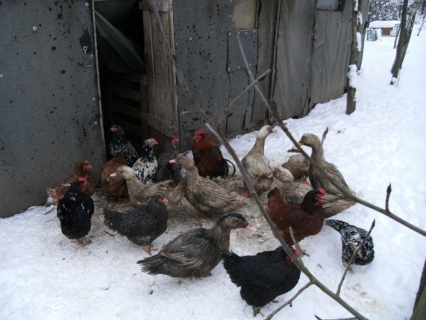W tle fotki jest korytko ale jego wstępna wersja, aby rzeczywiście zdawał egzamin to na górze muszą być jeszcze przybite wąskie deseczki w odstępach aby kury i kaczki nie wchodziły do środka.