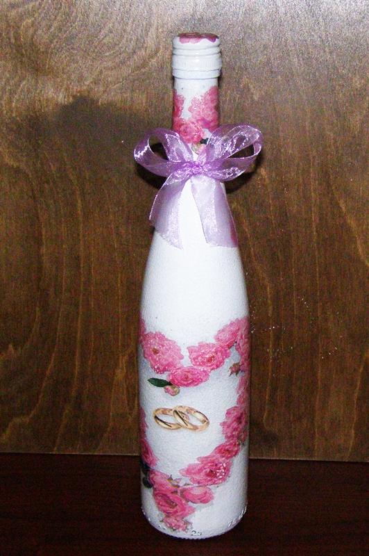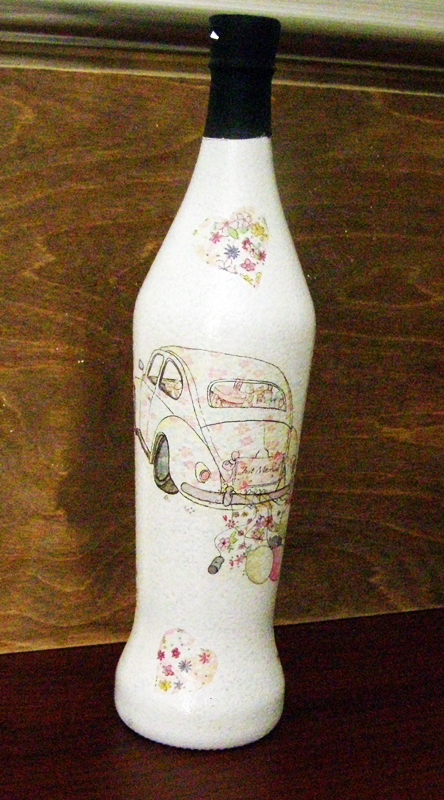 Takie robiłam na ślub koleżanki Córki i dla jeszcze jednej kobitki. W tej butelce z samochodzikiem, jest oryginalne, kupne wino. W podobny wzór robiłam sąsiadom ale z szampanem :) , bardzo się Młodym pomysł spodobał :)