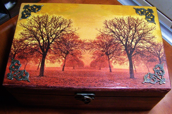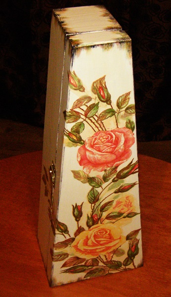 W wolnej chwili takie przedmioty udekorowałam: skrzyneczkę i szafkę na klucze :)