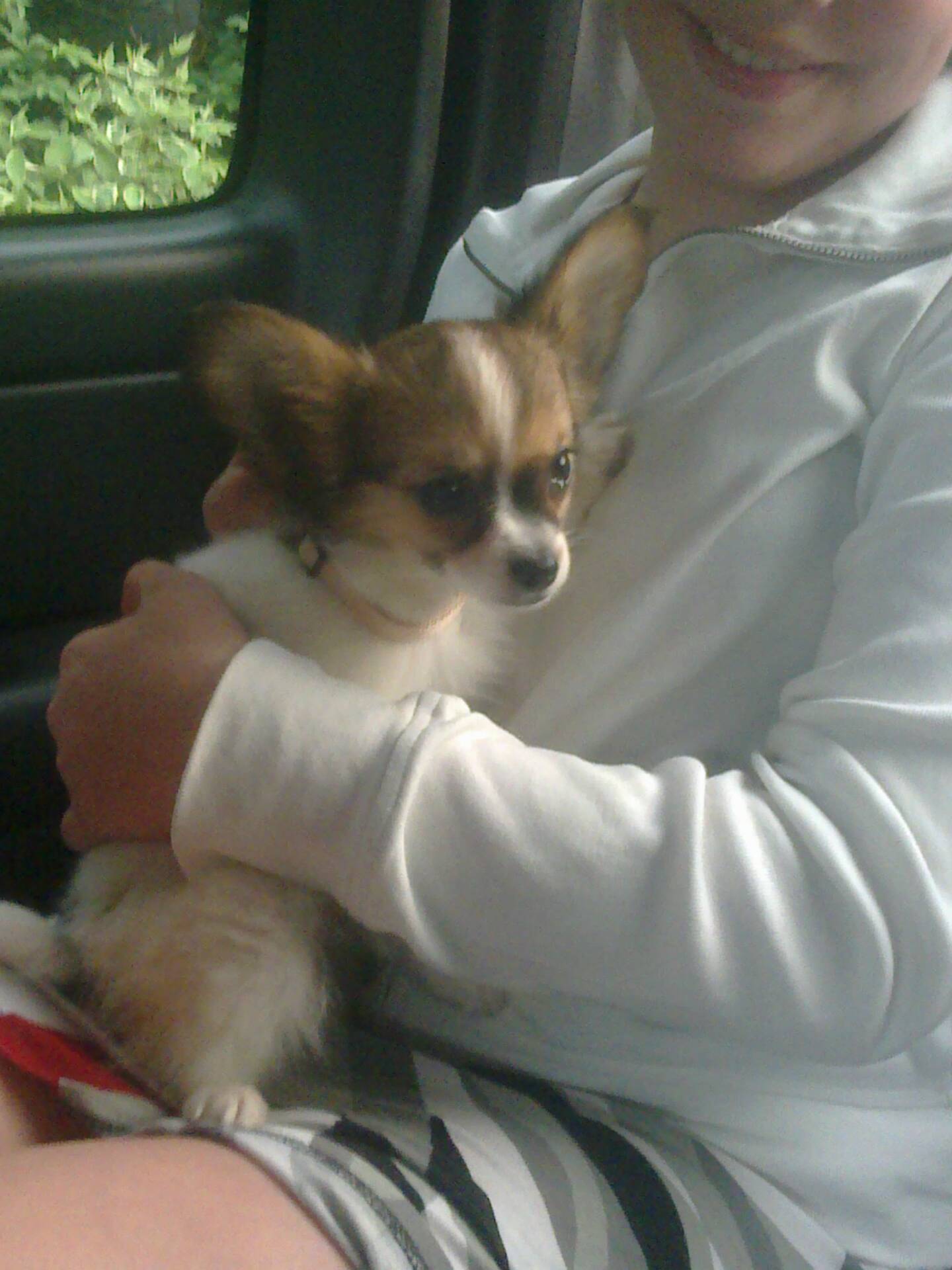 W tej chwili ma 10 tygodni. Urosnie jeszcze, bedzie troche wieksza niz chiuhuahua. Jest slodka i bardzo spokojna. Dzisiaj nawet zalatwila sie na spacerze ;) Ale jeszcze nie reaguje na swoje imie...