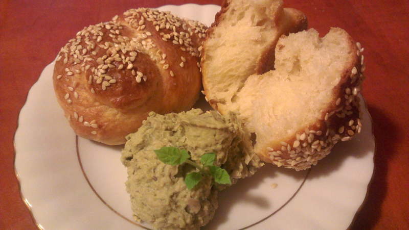 Dobrze wyrobione ciasto odstawiamy do wyrośnięcia. Gdy podwoi objętość dzielimy je na części i formujemy bułeczki (w rękach wywałkować ciasto podłużnie i związać jak supełek), jak lekko podrosną (15 min w cieple) smarujemy rozbełtanym jajkiem i obsypujemy sezamem. Pieczemy ok 20 minut w rozgrzanym do 170 stopni piekarniku. Długość pieczenia zależy od piekarnika . Gdy bułeczki zarumienią się są gotowe.