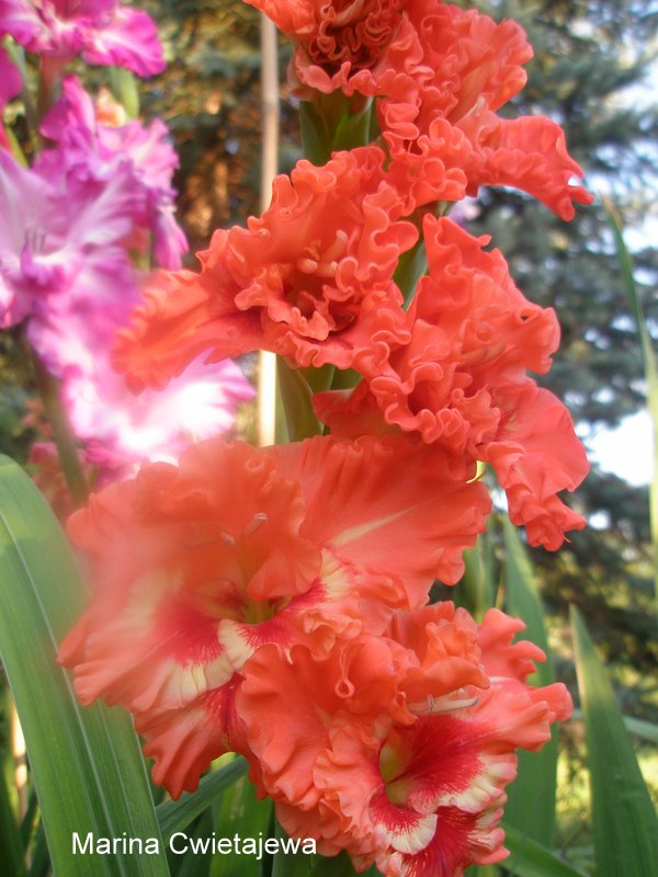 Tak naprawdę na fotkach te odmiany sprawiają wrażenie takiego ..hm. "przepychu" [kwiatka],ale w naturze nie wyglądają tak krzykliwie :D Moim zdaniem mozna je wszędzie zakomponować,a jak jest coś nie teges,to ciach do wazonu [ubaw] U mnie rosły w różnych miejscach ( miałam ok 300 cebul w tym ok 120 "rasowych"),więc sadziłam tam,gdzie było miejsce. Np na górce przy oczku rosły żółte mieczyki z żółtymi liliami turbanowymi Yellow Tiger ,na innej rabacie miały do towarzystwa lilie różnej maści,lawendę,miodunkę,miniaturową tawułkę chińską,eucomisy a w tyle wielkie hosty [ubaw] . Nic się nie gryzło [diabel] . Poza tym mieczyk kwitnie raptem tydzień do dwóch,czasem faktycznie lepiej ściać go do wazunu,bo w czasie upałów dłuzej sie utrzyma.